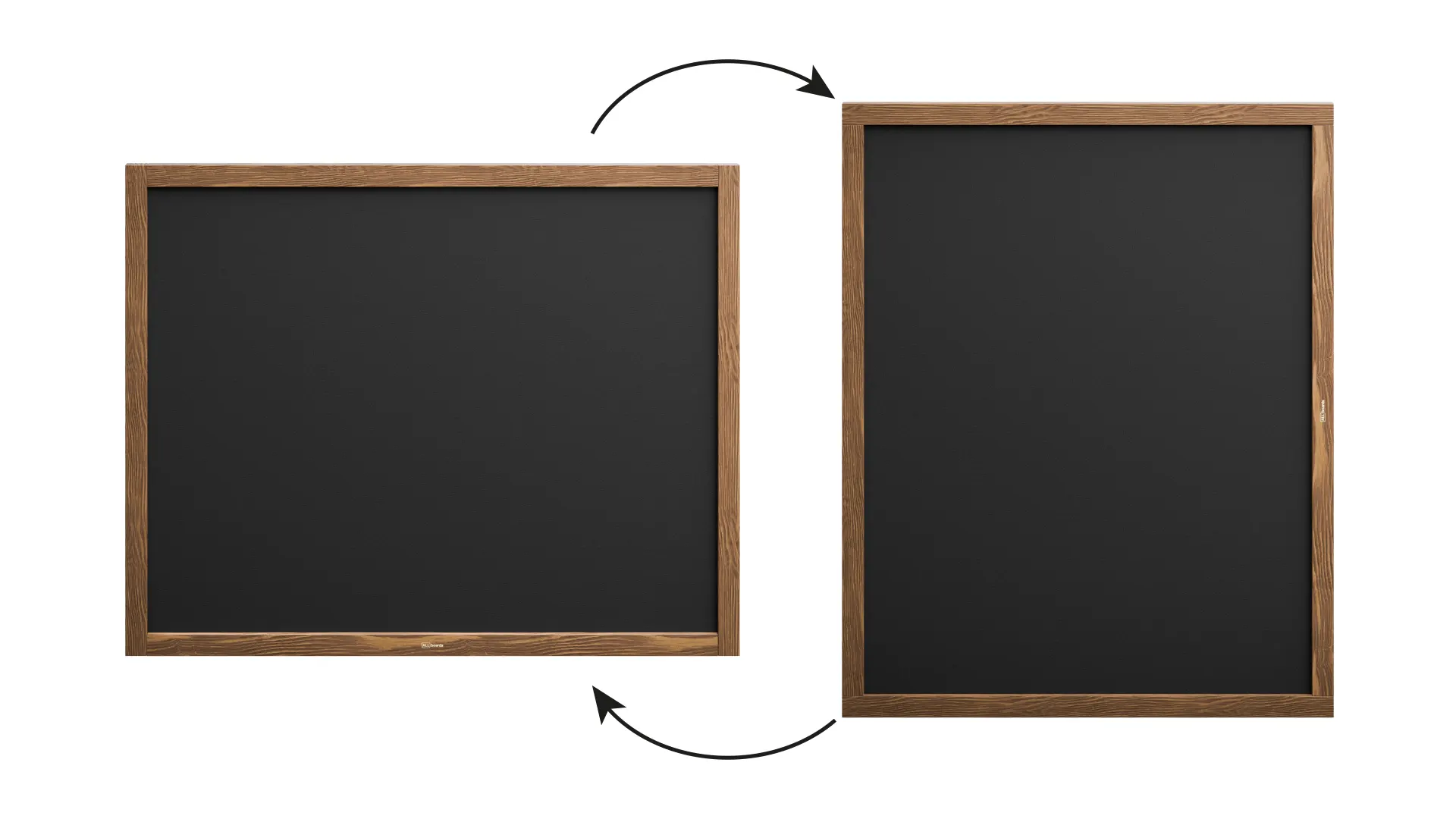 The frame is light and flexible. It is made of brown pinewood . The board can be attached vertically or horizontally as required using a mounting system incorporated into the frame.
