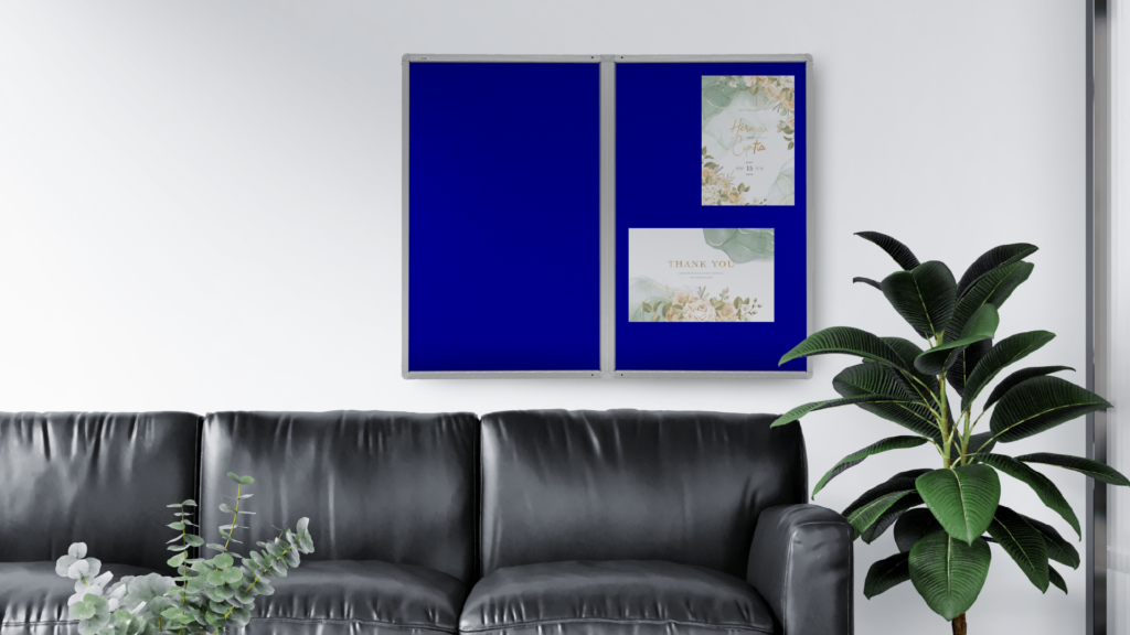 Blue Felt Display Case with Aluminium Frame 180x120cm Lockable Poster Case with Felt Rear Panel