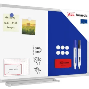 Combination Board 2 in 1 Whiteboard & Blue Felt Board with Aluminium Frame 60x40cm, Pin Board Magnetic Board