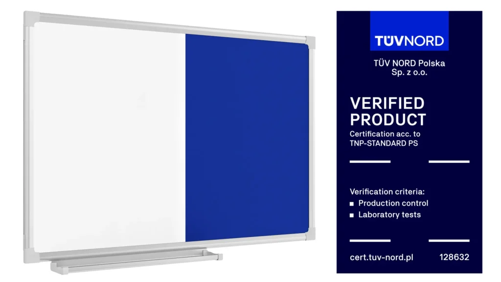 The board surface consists of two parts. One is a magnetic, dry-erase whiteboard and other is a felt notice board. The notice board side is made of felt carefully glued to a fibreboard. which is making it durable and elegant. The magnetic side is made from high quality, metal sheet overlayed with varnish. This enables the surface to be cleaned quickly and without streaks. It also provides high contrast and prevents the ink from penetrating the surface. This ensures effective use of the surface without leaving marks and streaks of ink.