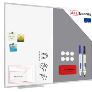 Combination Board 2 in 1 Whiteboard & Grey Felt Board with Aluminium Frame 120x90cm, Pin Board Magnetic Board