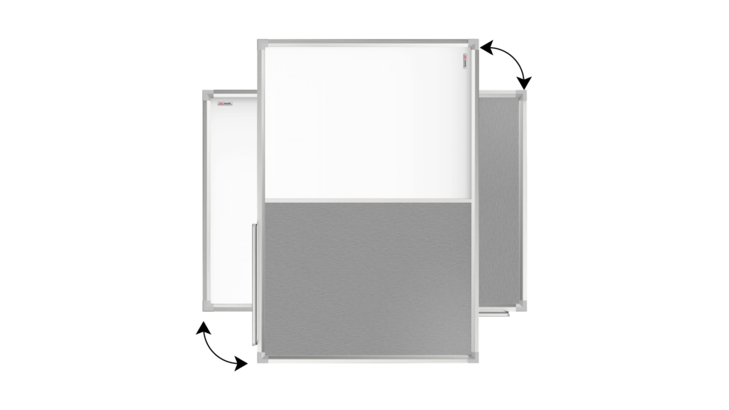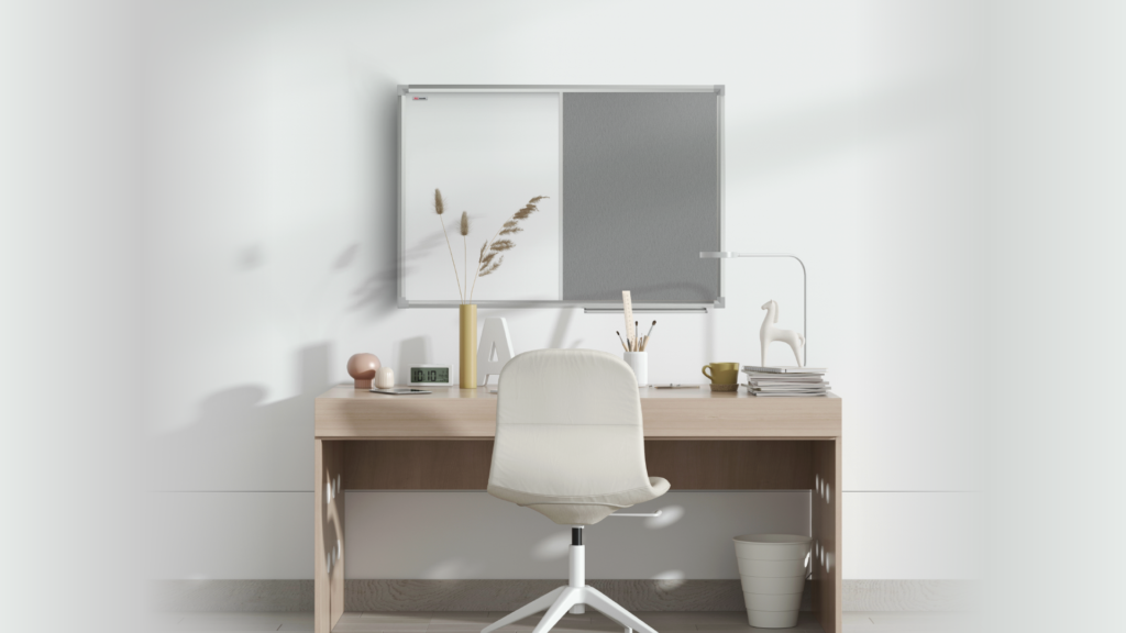 The board surface consists of two parts. One is a magnetic, dry-erase whiteboard and other is a felt notice board. The notice board side is made of felt carefully glued to a fibreboard. which is making it durable and elegant. The magnetic side is made from high quality, metal sheet overlayed with varnish. This enables the surface to be cleaned quickly and without streaks. It also provides high contrast and prevents the ink from penetrating the surface. This ensures effective use of the surface without leaving marks and streaks of ink.