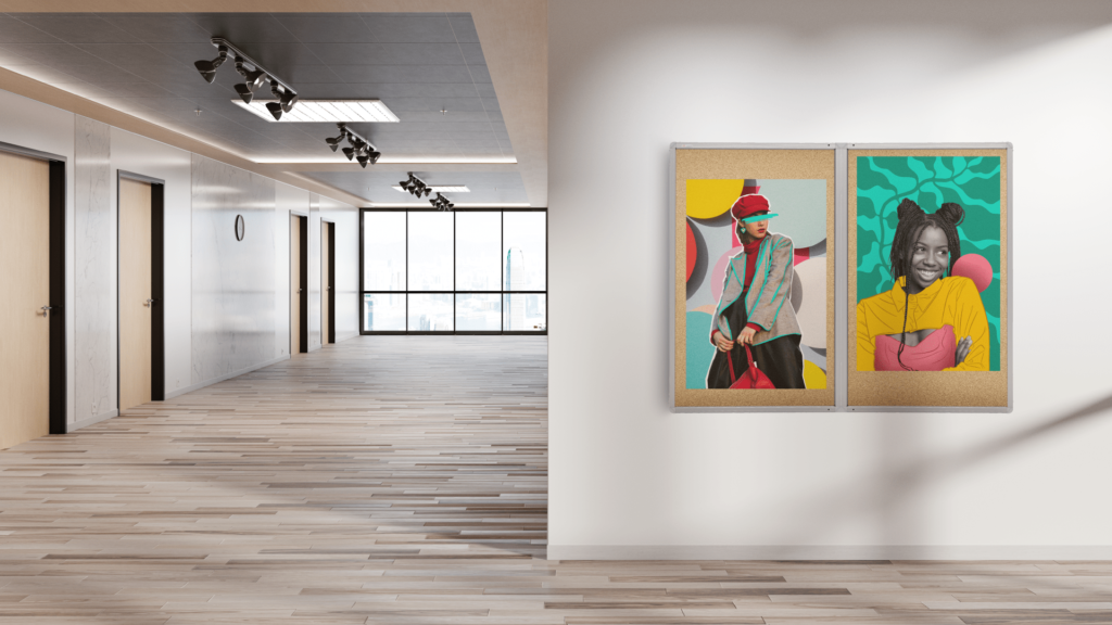 The rear panel of the display case has a surface made of high quality natural cork where any advertisements, pamphlets or documents can be attached with pushpins. The advantage of this surface is that the holes automatically heal itself after a short time. Thus, this durable board is optimally designed for intensive use. The aluminium frame provides strength to structure and gives an aesthetic appearance. The poster case is easy to use and easy to assemble. The corners are equipped with openings that allow quick installation on concrete, wooden and plasterboard walls.