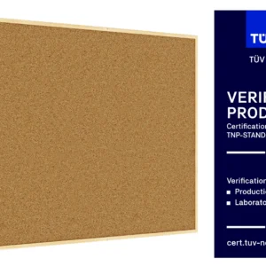 The surface of the noticeboard is made from the finest quality natural cork, which has been processed to achieve the optimal density and smoothness. The cork, 1 mm thick, is mounted on a fibreboard base, ensuring rigidity and durability.