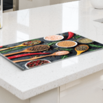 The glass surface ensures the highest level of hygiene in the kitchen. Thanks to its smoothness, no food residue, liquids or bacteria can get into the surface. This is a definite advantage over boards made of wood or plastic. The glass surface is completely odourless and prevents the penetration of smell. In addition, the glass is very easy to wash and helps to keep it clean in everyday use.