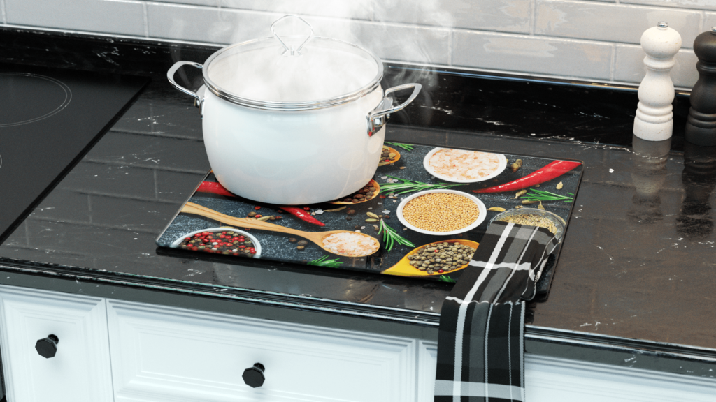 - VERSATILITY - the glass plate has many uses. It can be used as a cutting board, hob protection, serving tray, pad for hot and cold dishes, or as an additional work surface in the kitchen.