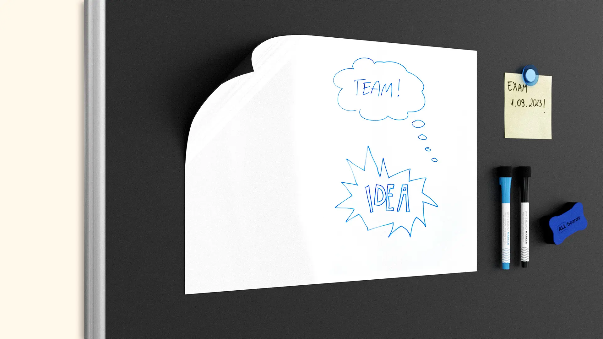 The overlay adheres to all types of boards and flipcharts made from metal sheets.