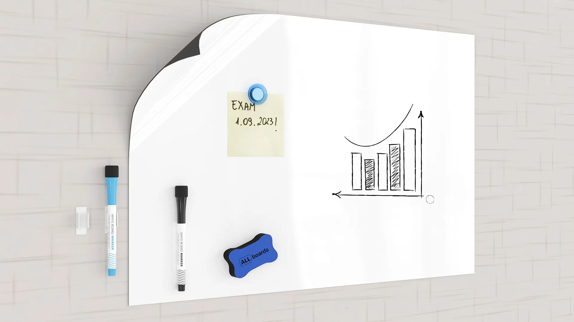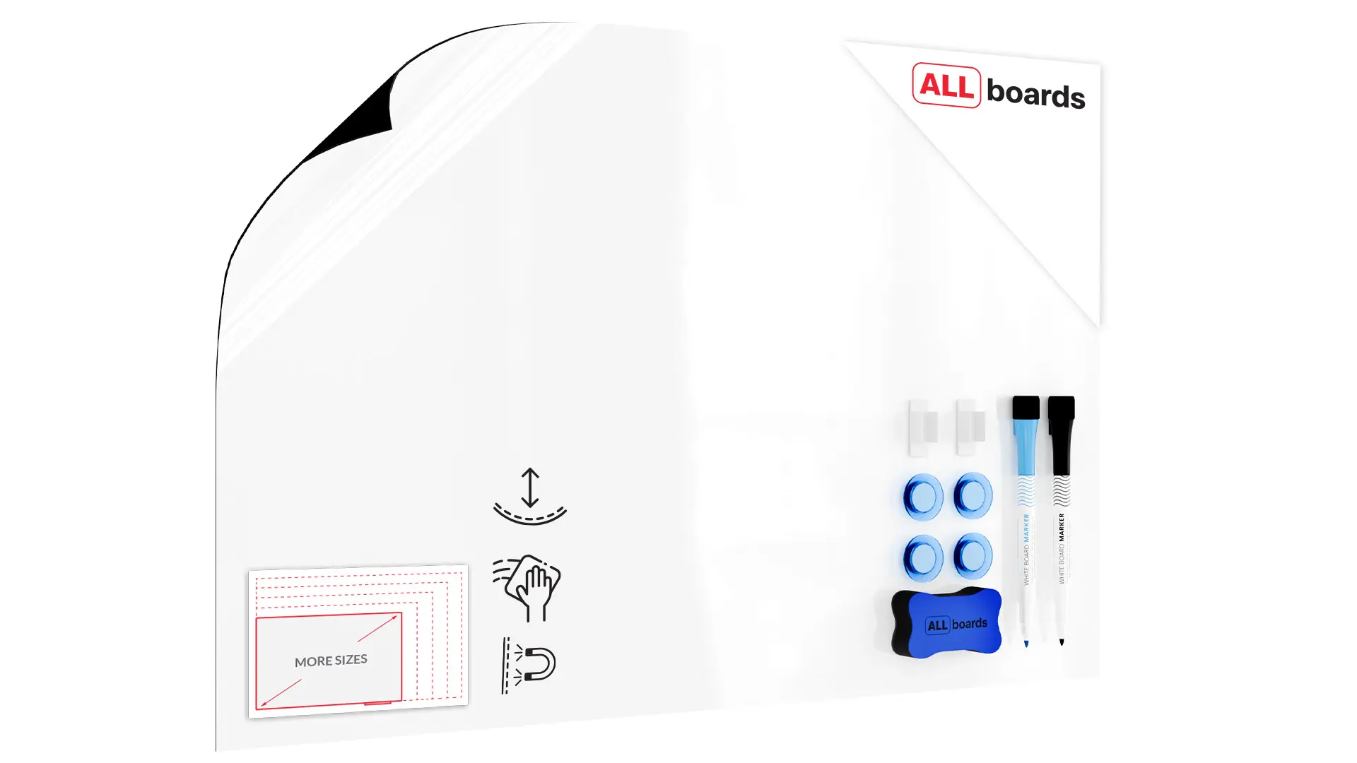 The ALLboards self-adhesive dry-erase overlay is an ultra-thin whiteboard for your notes, featuring an adhesive backing that makes it easy to attach to your chosen surface — quickly, effortlessly, and without drilling!